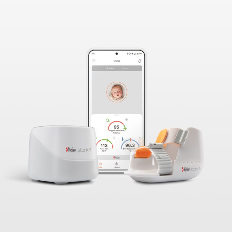With an app that can connect you from almost anywhere, this vitals-monitoring Masimo Stork™ boot and feature-packed baby monitor help provide peace of mind while your baby is sleeping. The FDA-cleared Vitals+ bundle tracks baby's vitals including oxygen saturation, pulse rate and skin temperature. When those levels fall outside preset ranges, caregivers are alerted via visual and audio alarms on the app. Custom alerts can also be set up for changes in baby's room condition and sleep position. The flexible, medical-grade silicone boot is comfortable for sleeping, and the monitor has crisp two-way audio to hear and talk to baby from anywhere via the app. Vitals+ uses the same SET® technology that's found in many NICUs, and is cleared for use from baby's first day at home.