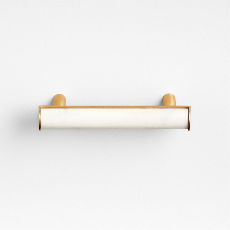 Crisp, clean and organically beautiful, our Mason bar pull frames a rod of smooth white marble in gleaming brass. The handle instantly dresses up cabinet doors and dresser drawers in Jazz Age glamour that fits seamlessly into modern homes. A Crate & Barrel exclusive, this unique marble pull joins our Mason hardware collection.