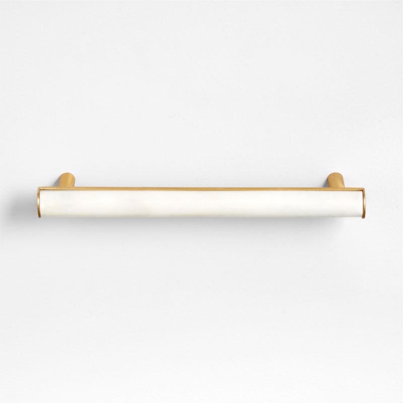 Crisp, clean and organically beautiful, our Mason bar pull frames a rod of smooth white marble in gleaming brass. The handle instantly dresses up cabinet doors and dresser drawers in Jazz Age glamour that fits seamlessly into modern homes. A Crate & Barrel exclusive, this unique marble pull joins our Mason hardware collection.