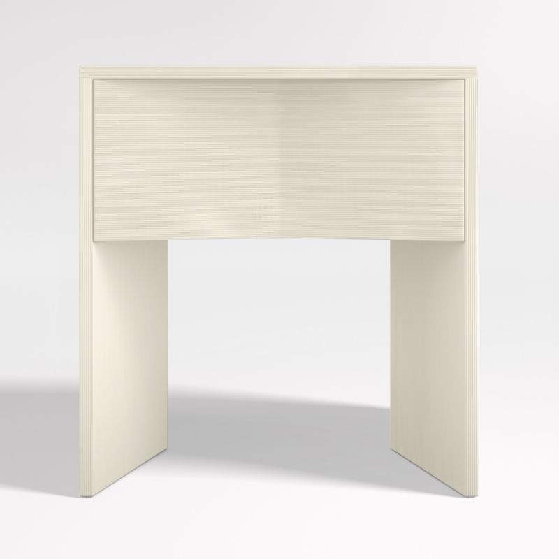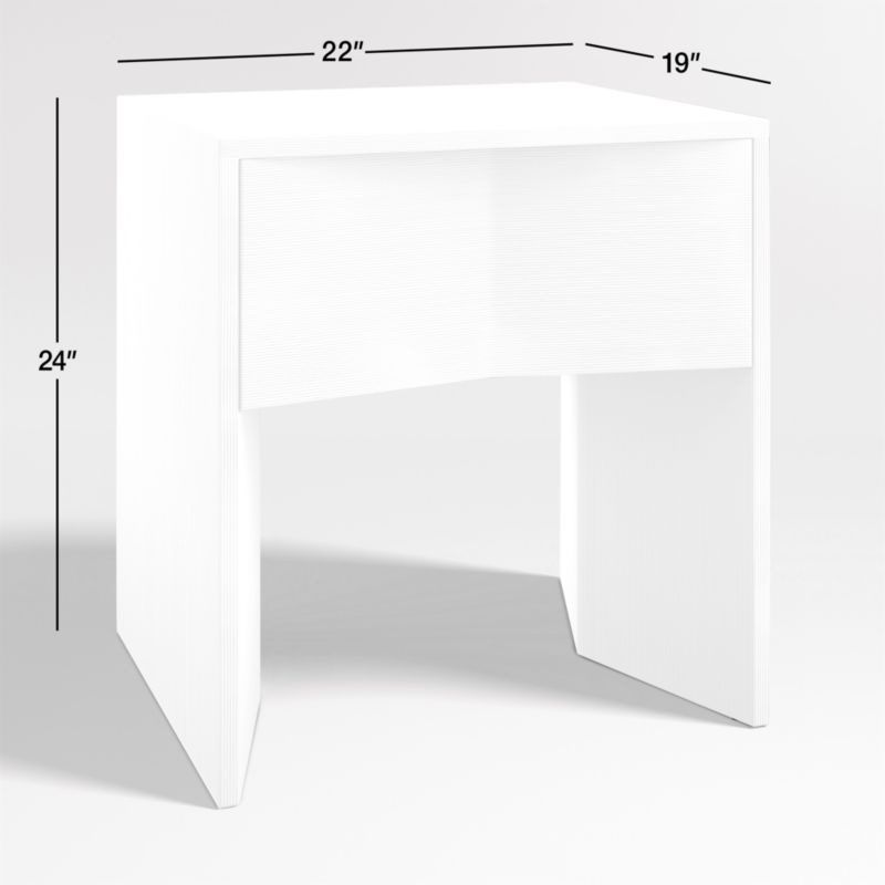 Architectural in design, avant-garde in spirit. Modern Matero invigorates its minimalist silhouette with shifting planes and unexpected angles. The nightstand's clean waterfall profile defies expectations with triangular feet and a drawer front accented with converging slants. Finished in opaque white and hand-troweled stria texture, our exclusive Mataro nightstand redefines the contemporary bedroom.