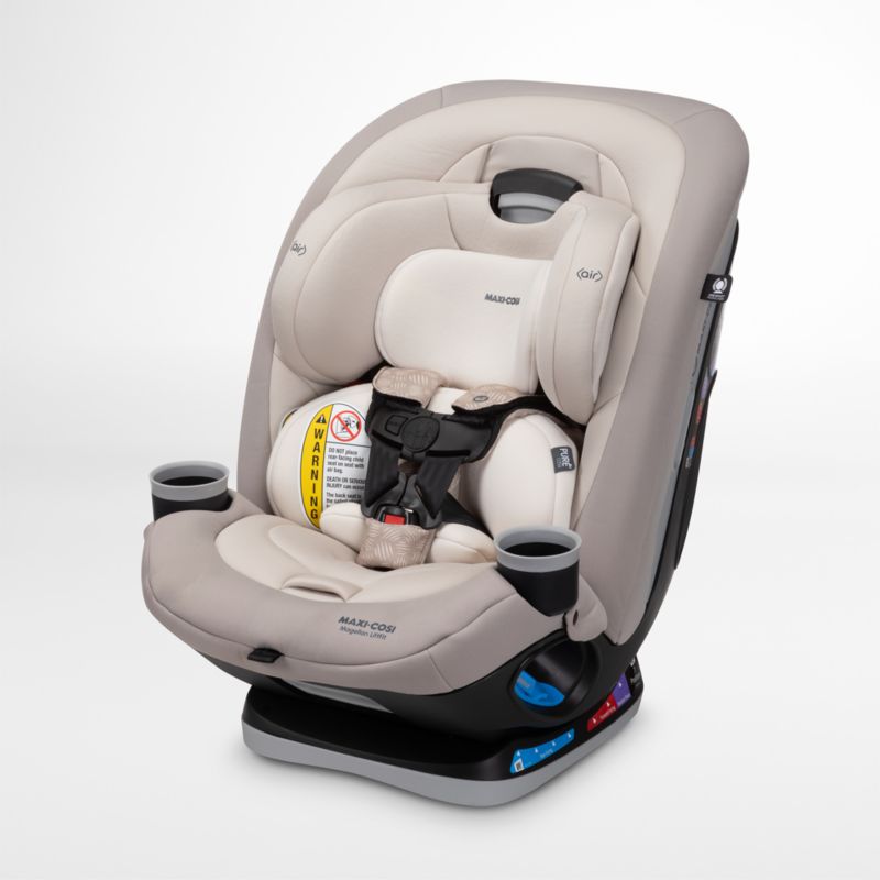 The Magellan baby car seat by Maxi-Cosi converts from infant seat to forward-facing to booster over the span of your child's first decade. Designed to hold children from birth to 10 years, with a weight range of 5–120 pounds, this tan convertible car seat has 5 modes to grow with different ages and stages. Its easy-to-adjust features include a 7-position recline and 14 headrest heights that raise with the harness. A unique 3-position torso adjustment and premium (and machine-washable) fabrics make car rides comfortable, while the headrest uses Air Protect technology for cushioning and support. All of this plus simple, straightforward installation makes this car seat the perfect fit for infancy, toddlerhood and beyond.