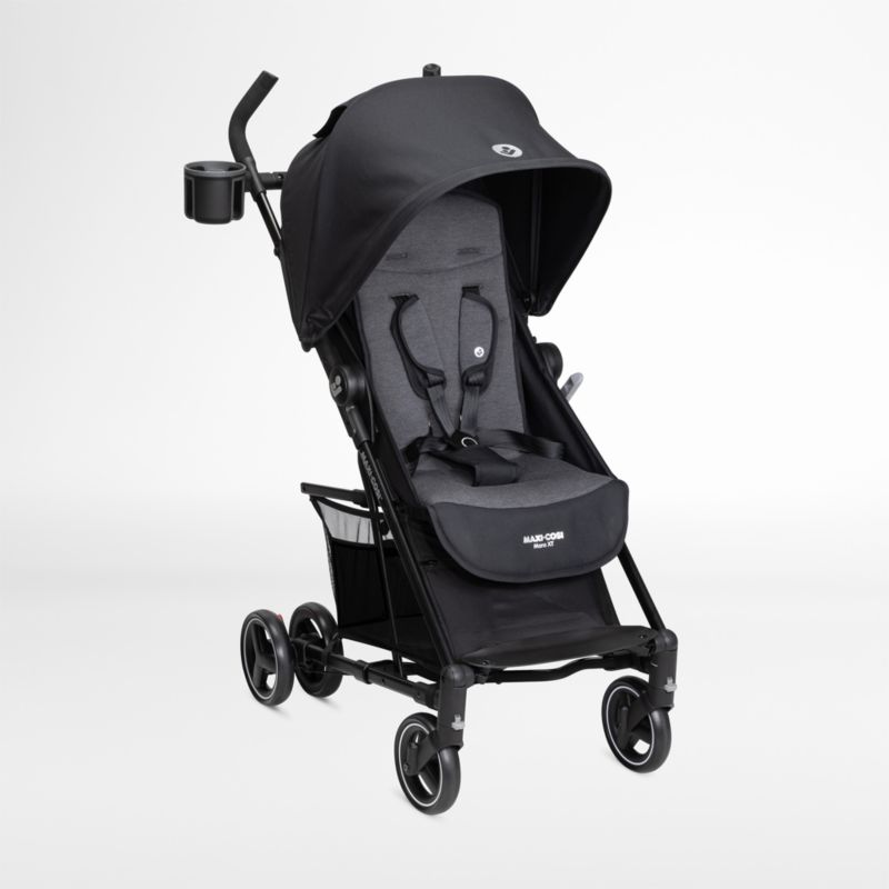 This cleverly designed black stroller packs the features of a full-size stroller into a sleek, compact design. An extendable vented canopy, adjustable leg rest, reclining seat and ultra-padded seat keep little ones comfortable while all-wheel suspension and comfort grip handles help caregivers navigate with ease. Its unique, multi-directional fold allows it to be stored upright and more compactly than most, so it fits into the closet or trunk of the car. An extra-large basket holds baby essentials—plus, there's a zippered storage area near the handlebar for grown-up items like keys and credit cards. It all adds up to a compact baby stroller ready to go wherever your journey takes you.