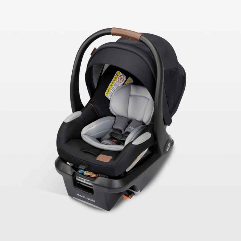 Keep your family's youngest traveler cozy and secure with the Maxi-Cosi Mico Luxe Infant Car Seat in black. This premium car seat is easy to carry, with a lightweight design and contoured vegan leather handle. Transferring the seat from vehicle to stroller takes just seconds thanks to the one-handed release mechanism. Installing the base is a breeze too, with MaxiLock ™ technology and an intuitive design. The base fits securely into your vehicle with 3 adjustable positions, a self-tightening LATCH system and a load leg to limit movement in a collision. Plus, large belt guides make it easy to install the baseless seat in a rideshare. The Mico Luxe+'s Side Impact Protection (SIP) and extra-plush padding on its removable infant head and lumbar inserts add extra protection and security. The shell's ClimaFlow technology and a ventilated canopy help keep baby comfy and cool. PureCosi fabrics, made without wool or added fire-retardant treatments, are soft and gentle on young skin—and better yet, they're machine-washable.