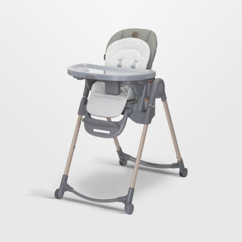 Mealtimes are more fun with Maxi-Cosi's convertible high chair. With its 5 recline angles, 4 tray positions and 9 heights, this chair grows with your child up to age 5. Use it with the infant insert, then as a traditional high chair, and then change it to a big-kid booster seat when the time is right. Parents will love the liquid-resistant, earthy green fabric and ease of cleaning: A machine-washable seat pad zips off, while the removable BPA-free tray is dishwasher safe. Rear-locking wheels keep the seat secure, and a compact fold means you can store the seat easily—although this customizable chair with wooden legs looks so good, you'll want to keep it on display.