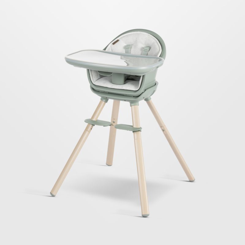 With its contemporary design and elegant earthy green and natural wood color combo, the multi-use Moa high chair looks super sleek whatever mode it's in. As your little one grows, it converts from a high chair, to a booster seat, to a toddler stool, to a versatile desk and seat combo. With no hidden crevices for food to get stuck, the innovative modular design is a cinch to install and adapt. Its lightweight frame makes it easy to carry around, plus it has anti-slip rubber feet to ensure it stays in place. What's more, it's quick and easy to keep clean: from the machine-washable fabric inlay and harness to the dishwasher-safe tray insert.