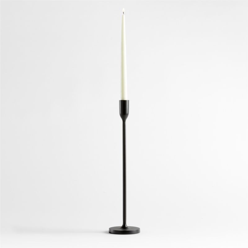 A lot of skill goes into crafting our deceptively simple Megs candleholder. Each candleholder is hand-cast of aluminum and then ground and drilled by skilled artisans to achieve its dramatic simplicity. The tall, statuesque holder rises on a slim stem to hold a single taper candle in a rounded tulip-shaped cup. On its own or partnered with the 11-inch candleholder, Megs transcends the season filled with a colorful, contrasting white or monochromatic black taper candle.