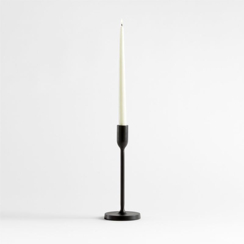A lot of skill goes into crafting our deceptively simple Megs candleholder. Each candleholder is hand-cast of aluminum and then ground and drilled by skilled artisans to achieve its dramatic simplicity. The 11-inch holder rises high on a slim stem to hold a single taper candle in a rounded tulip-shapedcup. On its own or partnered with the coordinating 18-inch candle holder, Megs transcends the season filled with a colorful, contrasting white or monochromatic black taper candle.