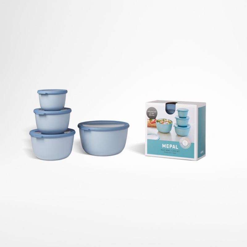 Kitchen storage goes fashionable in this stylish ice blue bowl set. Deep and round, the storage bowls make the most of refrigerator or freezer space. Transparent lids let you easily identify contents and provide an airtight and leakproof seal. Feel free to use the microwave-safe bowls to tote lunches, warm up leftovers or thaw ingredients. Featuring four sizes of nestable containers, the set makes a thoughtful gift for first-time apartment dwellers or homeowners.
