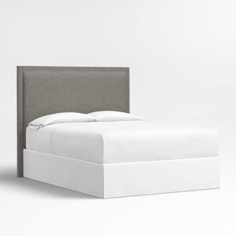 Our custom bed collection lets you mix and match our top-selling headboards and bases for a look that's truly yours. A tight border sets off the plush pillowed face of our Meraux headboard. Upholstered in a dark grey bouclé weave, the headboard features mitered corners for a tailored update on a classic bedroom silhouette. The upholstered headboard is designed to fit perfectly with any of our bed bases.