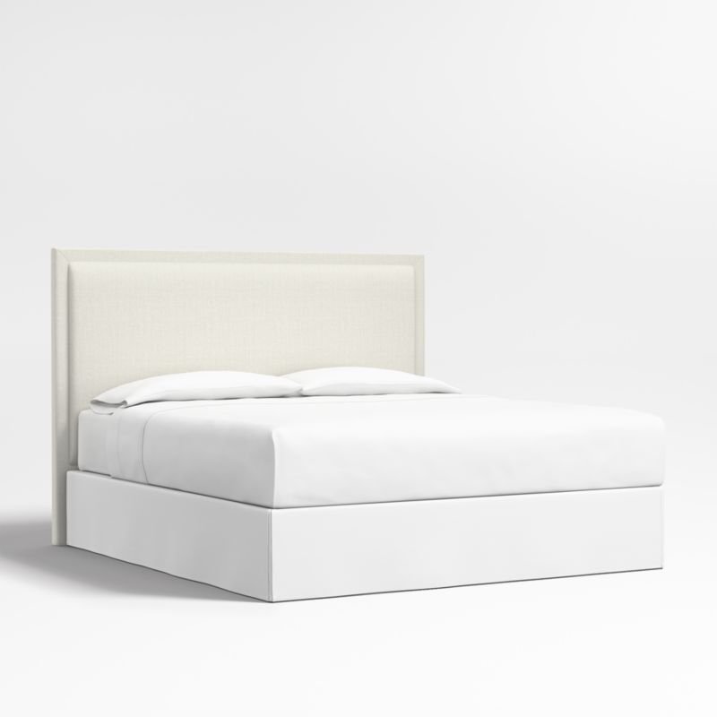 Our custom bed collection lets you mix and match our top-selling headboards and bases for a look that's truly yours. A tight border sets off the plush pillowed face of our Meraux headboard. Upholstered in an ivory textured weave, the headboard features mitered corners for a tailored update on a classic bedroom silhouette. The upholstered headboard is designed to fit perfectly with any of our bed bases.