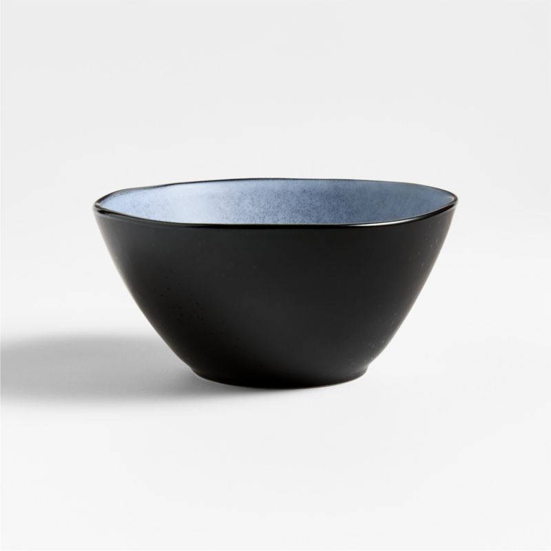 Inspired by Iceland's unique landscape marked with lava fields and glacial ice, our two-tone Mercer dinnerware features semi-matte charcoal exteriors and icy blue reactive glaze interiors. The recycled clay bowl fuses refinement and rusticity with freeform rims and rippled surfaces. Smooth enough to not harm tables, the unglazed ceramic bottoms further enhance Mercer's artisanal look.