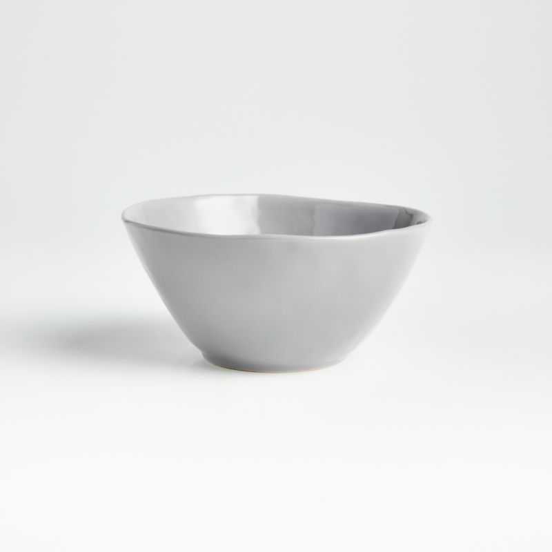 Our contemporary porcelain dinnerware sets a table of refinement and rusticity. The cereal bowl takes on organic overtones with a freeform rim and a finely "hammered" surface that ripples the light. Made of grey-glazed natural clay, the bowl may vary slightly in color. Smooth enough to not harm tables, the unglazed ceramic bottom gives each piece an artisanal look.