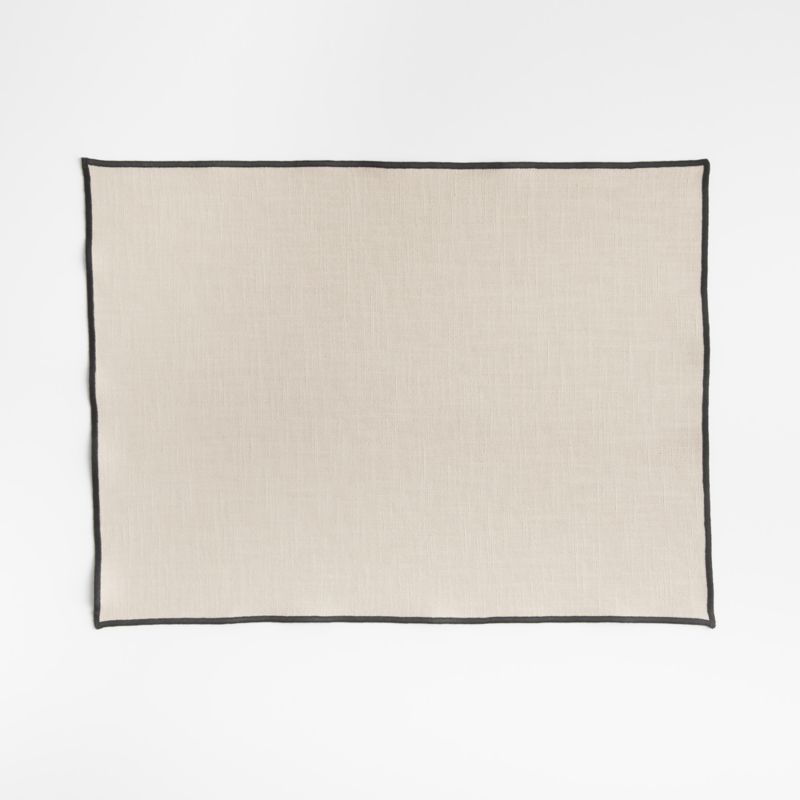 Black embroidery frames our warm, natural Mercer placemat for a crisp look that elevates any table, no matter how casual. Beautifully tailored with an outline of dense merrow stitching, the organic cotton table runner provides an understated frame for black, white, neutral or colorful dinnerware. Pair with the matching Mercer merrow-stitched napkins and runner to set a modern-yet-timeless table.