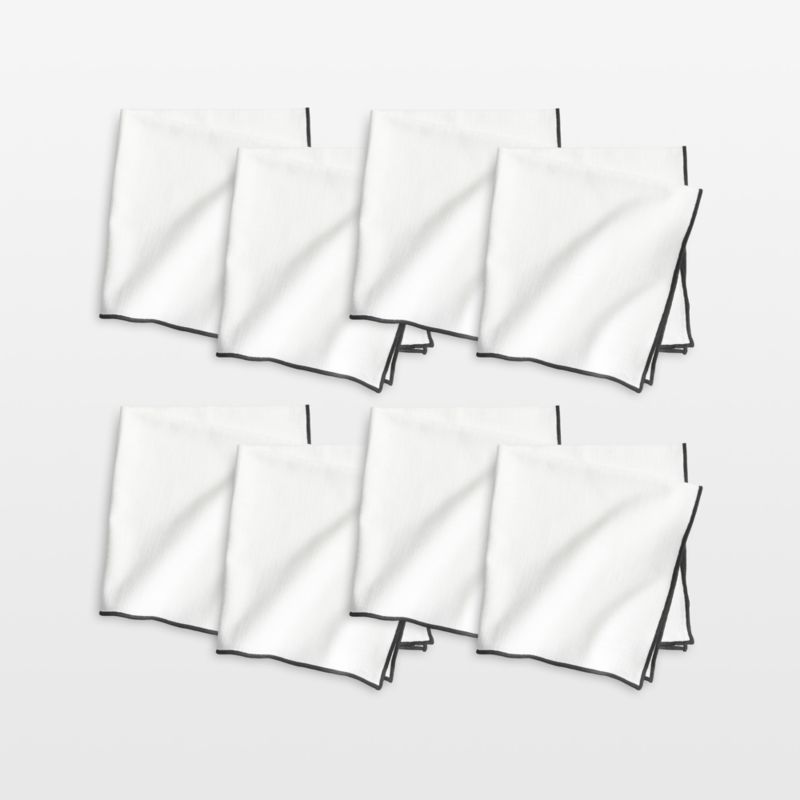 Black embroidery brings graphic impact to our white Mercer dinner napkins. Made of organic cotton, the eight bright white napkins in the set feature merrow-stitched borders in contrasting black for a look that's clean-lined and classically modern.