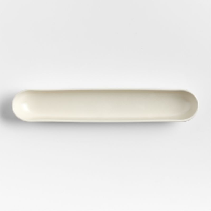 Named after the Mediterranean style of communal, small-plate dining, our Mezze collection is designed for casual, no-fuss entertaining. This elongated oblong dish accommodates a generous spill of olives or a row of crackers. Each ceramic serving dish is finished by hand with an off-white reactive glaze that will vary slightly and make each piece unique.