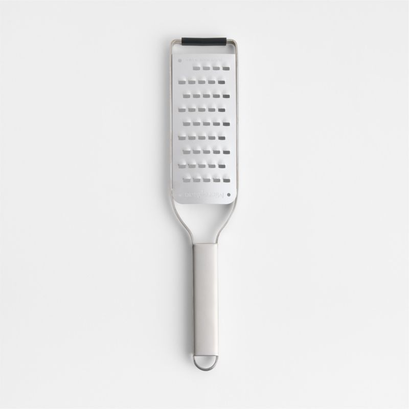Microplane's new Professional Best series elevates the company's rightfully revered graters with thoughtful design details and all-stainless steel construction. The ultrasharp grating head remains as durable and precise as ever, while the upgraded stainless steel handle with a matte chrome finish looks modern and elegant. Use this extra-coarse grater to effortlessly cut—not rip or tear—cheeses, chocolate and more.