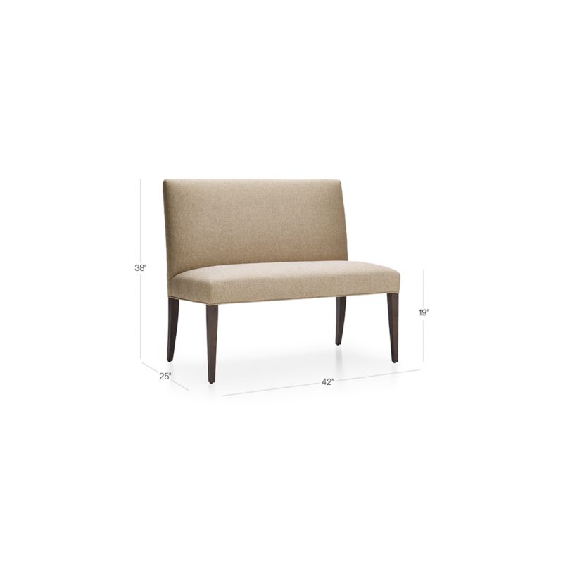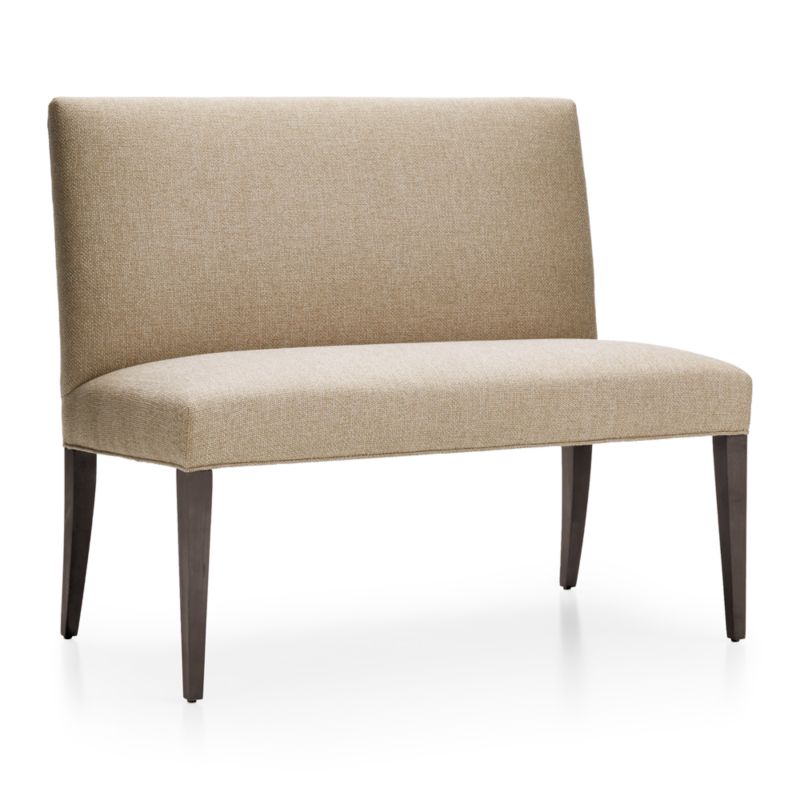 Classic with polished proportions and casual formality, the Miles upholstered small dining banquette bench can be used alone to seat two or pairs with a corner banquette bench for extra seating. The Miles 42" Small Dining Banquette Bench is a Crate and Barrel exclusive.