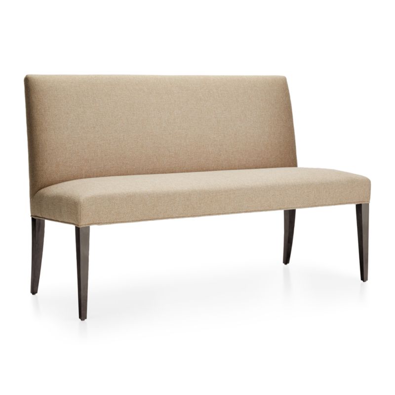 A comfortable alternative to the dining chairs, the Miles upholstered banquette bench brings polished proportions and casual formality to tableside seating. This armless dining banquette bench has a gently flared tight seat to accommodate two. The Miles 58" Medium Dining Banquette Bench is a Crate and Barrel exclusive.
