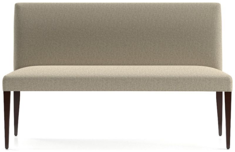 A comfortable alternative to the dining chairs, the Miles upholstered banquette bench brings polished proportions and casual formality to tableside seating. This armless dining banquette bench has a gently flared tight seat to accommodate two. The Miles 58" Medium Dining Banquette Bench is a Crate and Barrel exclusive.