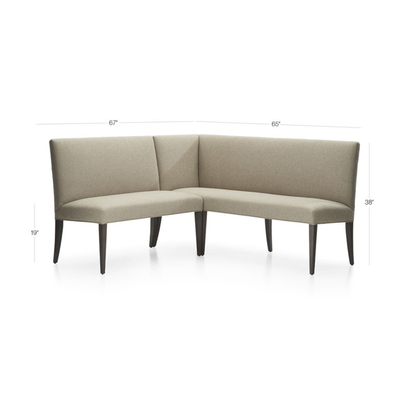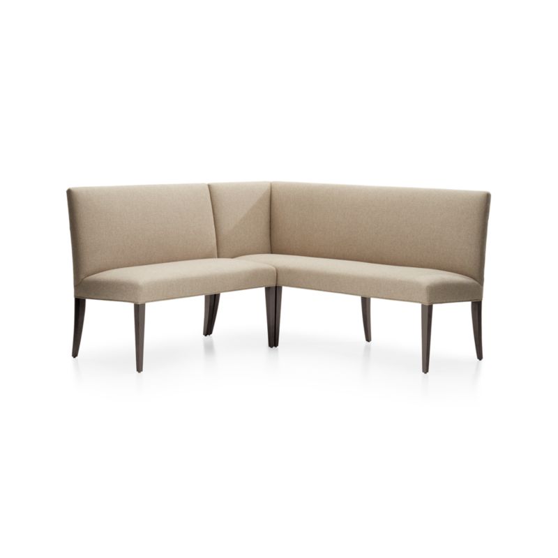 Compose custom dining room seating with the our Miles small left facing corner banquette, created from pairing our Miles Left Arm Banquette Bench and 42" Small Dining Banquette Bench. Offering polished proportions and casual formality, the combination creates booth-like seating with gently flared tight seats. The Miles Small Left Facing Corner Banquette is a Crate and Barrel exclusive.