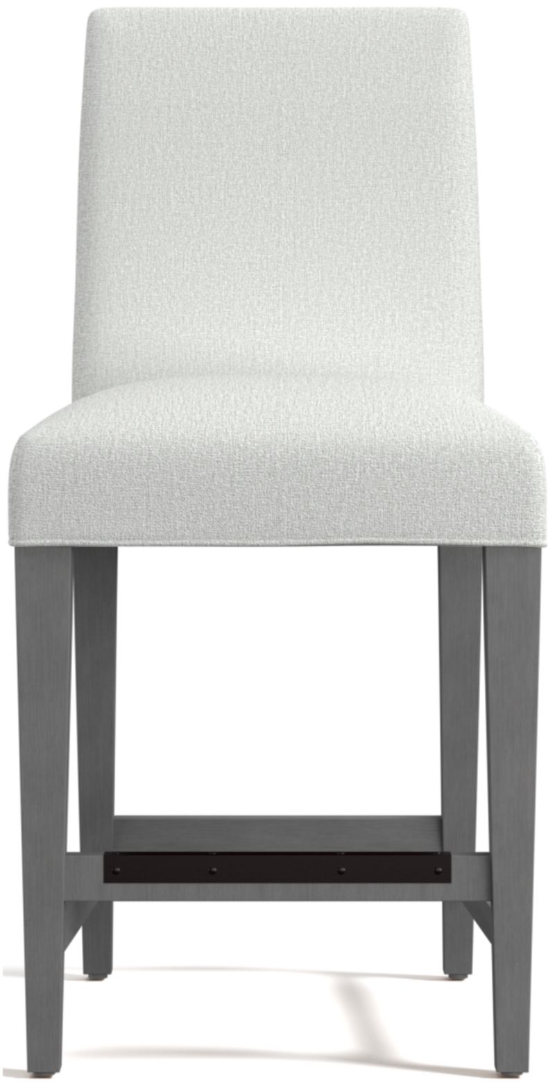 The Miles counter stool pulls up to high dining tables and kitchen islands with polished proportions and casual formality. Upholstered for comfort, the counter stool has hardwood legs with a foot rest that taper gracefully to the floor. The Miles Upholstered Counter Stool is a Crate and Barrel exclusive.