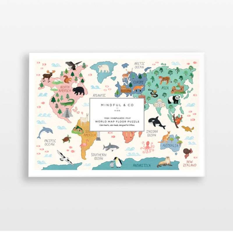 As kids fit each piece of Mindful & Co's World Map Floor Puzzle together, so too do various early-childhood skills click into place: including problem-solving, hand-eye coordination, patience and mindfulness. The map of the continents and regional icons, beautifully illustrated by artist Chloe Jasmine, provides an early geography lesson and encourages curiosity about the big, wide world. The 36 oversized pieces are durable and easy to handle, and they provide just enough of a challenge for little kids.