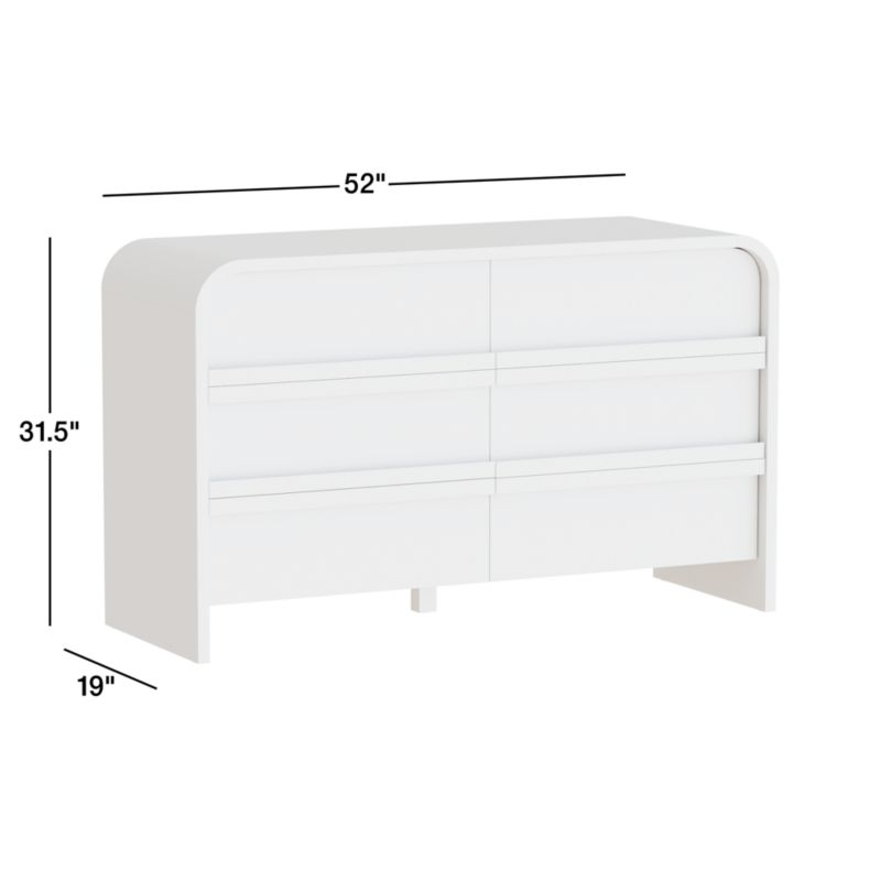 Light, bright storage done right. Our solid oak Mira Dresser features waterfall edges and a lightly cerused finish for a contemporary, coastal look that works in any space. Six roomy drawers provide enough storage for all your baby essentials now, and a full wardrobe of clothes through the teenage years.