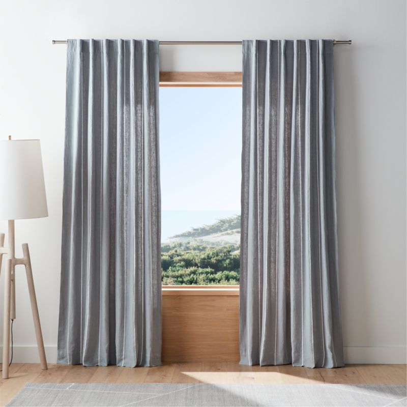 Mist Blue & Crisp White Linen Double Pinstripe Window Curtain Panel 52"x120"