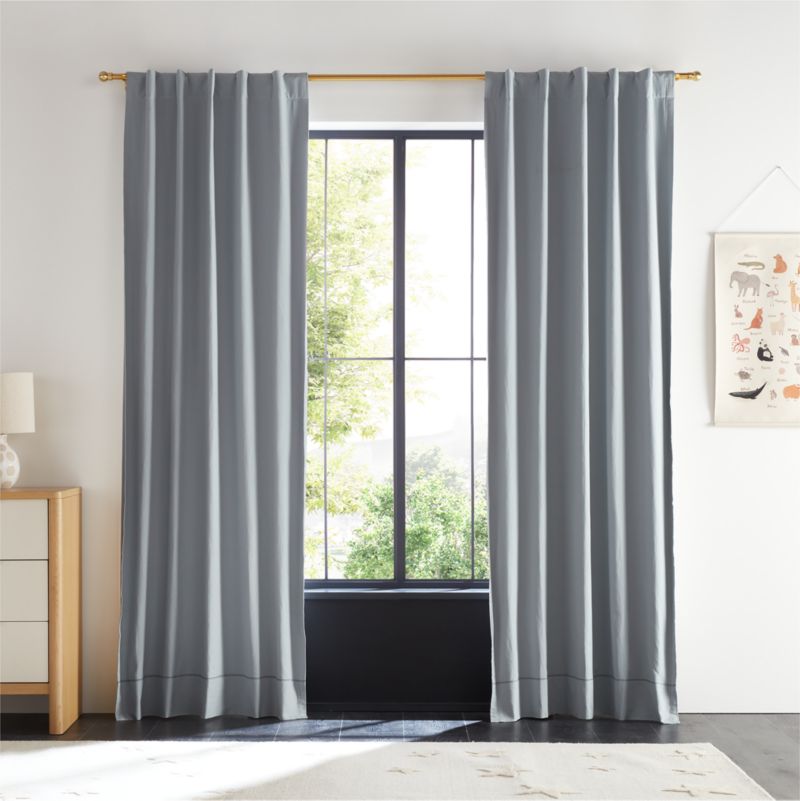 Make falling and staying asleep easier with our Mist Blue Blackout Curtain Panels. Featuring a delicate embroidery stitch at the hem, the curtains are made of a crisp cotton-linen blend with a natural slub texture (and a blackout panel to keep the room dark and cozy). Hang these curtains from the back tabs for an elegant pleated style, or use the rod pocket to create a more laid-back, gathered look.