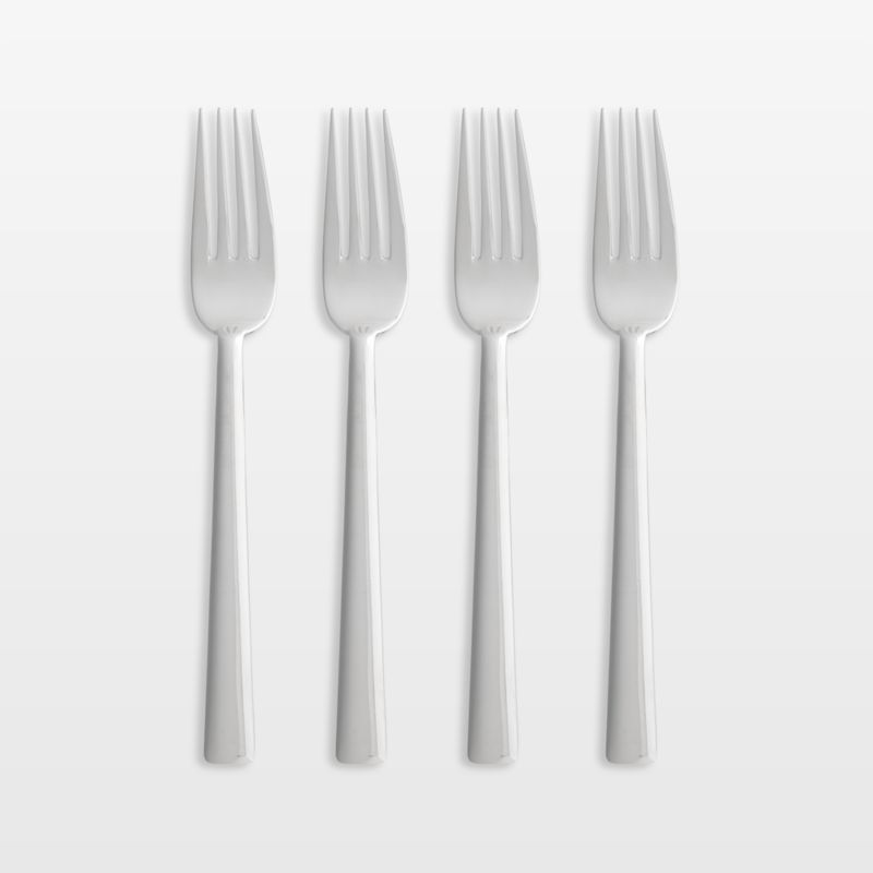 Ultimate flexibility in flatware. Customize your flatware collection with the pieces you need. This set of four polished stainless steel dinner forks is smooth in the hand with nice quality and weight. Our Mix flatware, a Crate and Barrel exclusive, is dishwasher-safe for easy cleanup after dinner parties and weeknight meals. To complete the look, pair with our other Mix flatware and serving pieces.