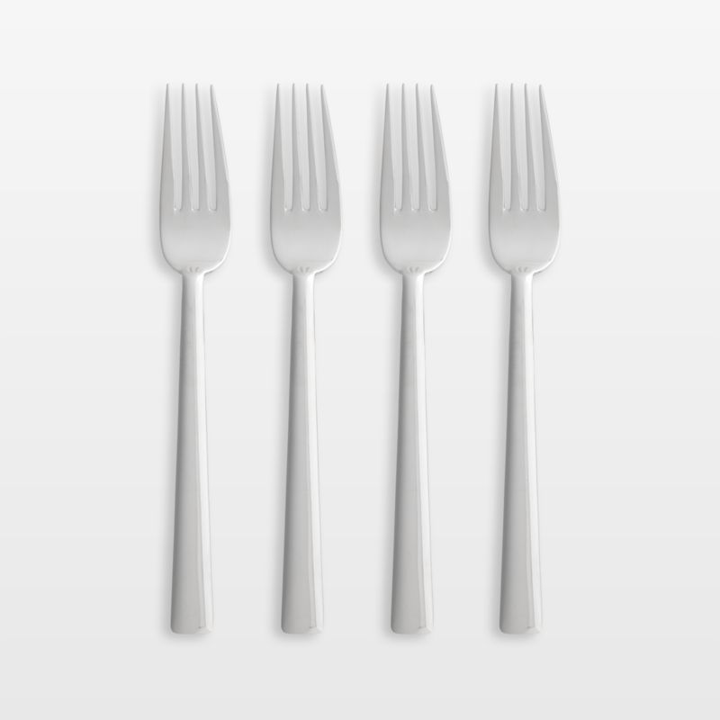 Ultimate flexibility in flatware. Customize your flatware collection with the pieces you need. This set of four polished stainless steel salad forks is smooth in the hand with nice quality and weight. Our Mix flatware, a Crate and Barrel exclusive, is dishwasher-safe for easy cleanup after dinner parties and weeknight meals. To complete the look, pair with our other Mix flatware.