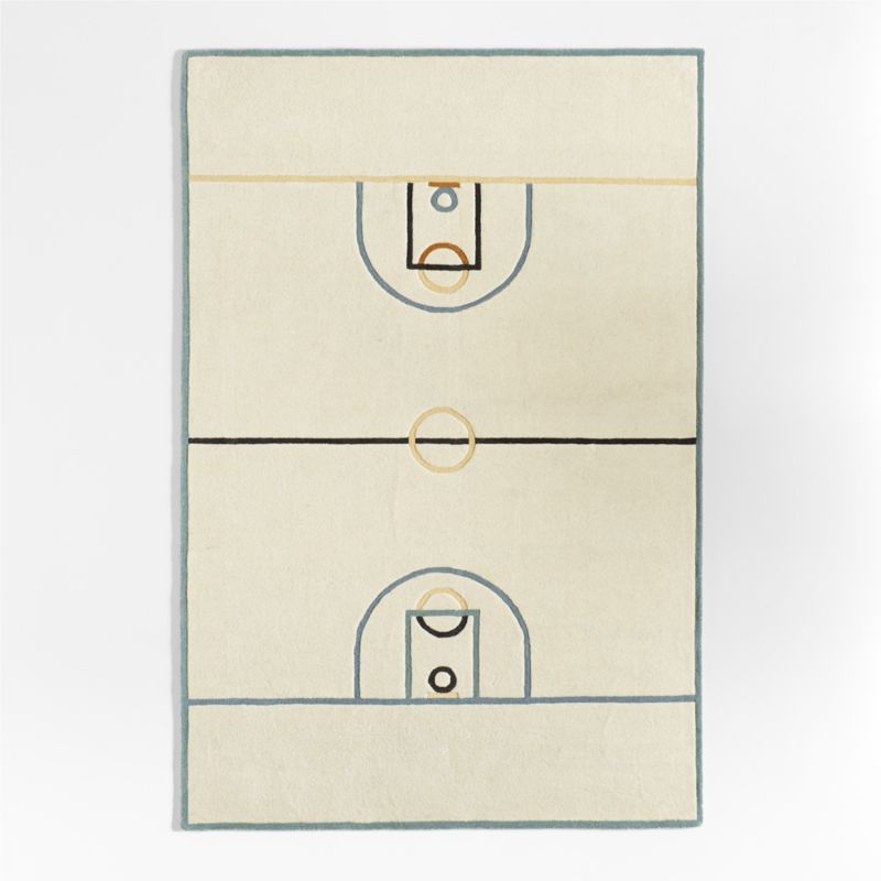 A slam dunk for kids' spaces, this Basketball Court Wool Area Rug features full-court details on a solid ivory background. Add it to the playroom or bedroom to help turn their hoop dreams into reality. We love the durable, long-fiber wool - expertly chosen for stain resistance and reduced shedding. Each rug is hand-tufted by skilled artisans with high-low construction for extra texture and dimension. The wool's dense cushioning makes it a supremely plush and sturdy choice.