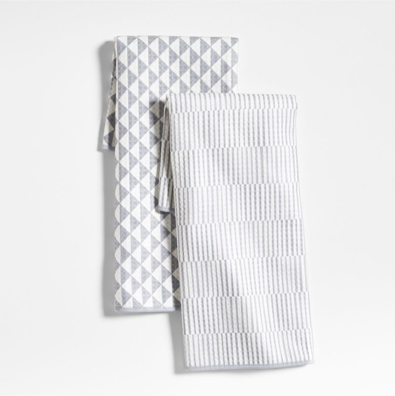 Textured Terry Alloy Grey Organic Cotton Kitchen Towels, Set of 2