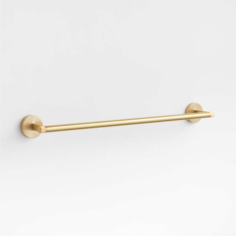 Sometimes it's the small things that pull a room together. That's why we've designed a hardware collection with modern silhouettes, clean lines and a touch of tradition to give your bathroom that perfect finishing touch. Made of brushed brass, the towel bar lends industrial chic to its minimalist design. Extending from flat bars anchored to circular mounts, the round bar is capped with fluted ends for a bit of texture. The 24-inch towel bar easily fastens to the wall with included hardware.