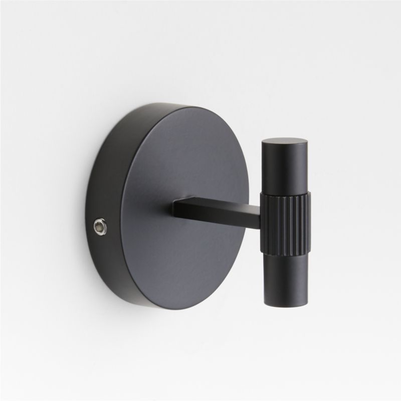 Sometimes it's the small things that pull a room together. That's why we've designed a hardware collection with modern silhouettes, clean lines and a touch of tradition to give your bathroom that perfect finishing touch. Made of brass finished in matte black, the towel hook lends industrial chic to a minimalist design. Anchored by an oversized round mount, the hook comprises a flat bar ending in a vertical cylinder accented with a fluted band for a touch of texture. The hook easily mounts on the wall with included hardware.