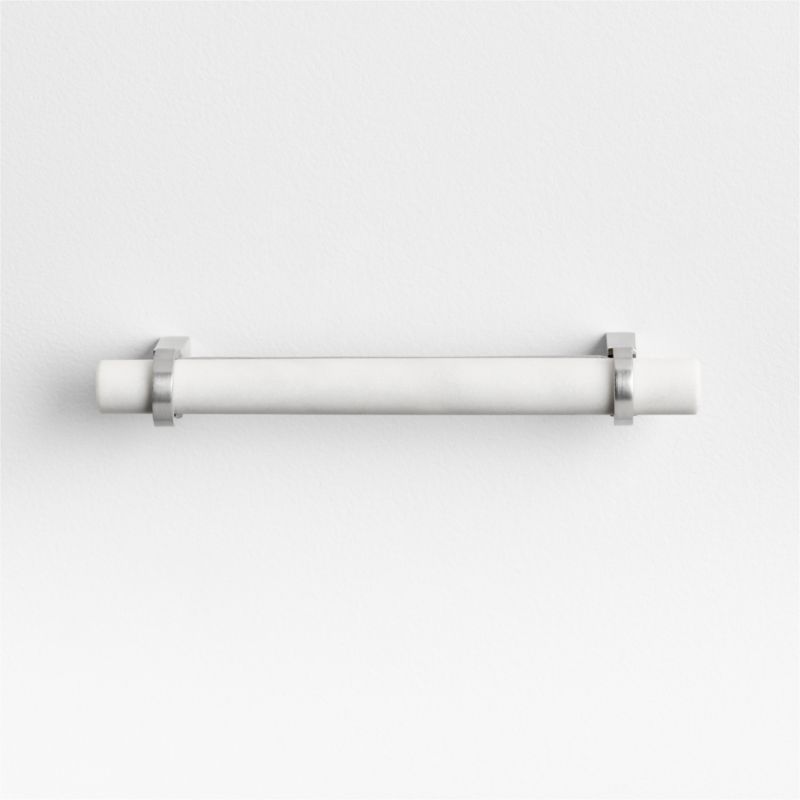 Sometimes it's the small things that pull a room together. That's why we've designed a hardware collection with modern silhouettes, clean lines and a touch of tradition to give your kitchen or bath that perfect finishing touch. Showcasing naturally beautiful white marble, our pull elevates a cabinet, dresser or vanity with an eye-catching organic accent. We love the way the matte silver bracket cradles the slender marble rod in a refined mix of materials. Our elegant five-inch bar pull instantly dresses up drawers and doors throughout the home.