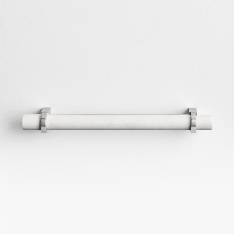 Sometimes it's the small things that pull a room together. That's why we've designed a hardware collection with modern silhouettes, clean lines and a touch of tradition to give your kitchen or bath that perfect finishing touch. Showcasing naturally beautiful white marble, our pull elevates a cabinet, dresser or vanity with an eye-catching organic accent. We love the way the matte silver bracket cradles the slender marble rod in a refined mix of materials. Our elegant six-inch bar pull instantly dresses up drawers and doors throughout the home.