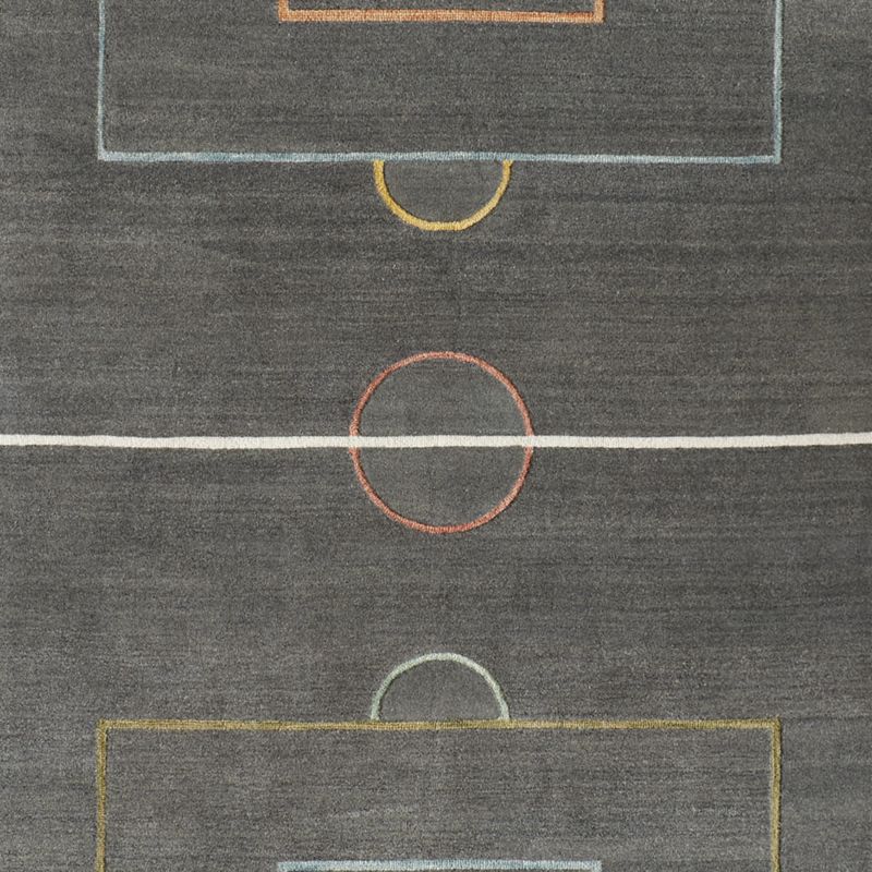 For young soccer stars in the making, there's no better place to be than out on the field. An all-star design for kids' spaces, this Soccer Field Wool Area Rug features full-pitch details on a solid charcoal background. Add it to the playroom or kid's bedroom to help turn their sporty dreams into reality. We love the durable, long-fiber wool - expertly chosen for stain resistance and reduced shedding. Each rug is hand-tufted by skilled artisans with high-low construction for extra texture and dimension. The wool's dense cushioning makes it a supremely plush and sturdy choice.