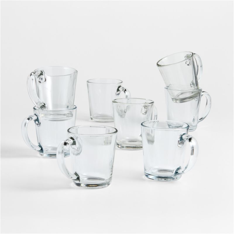 Enjoy tea, coffee or cocoa in our classic clear glass handled mugs. Suitable for all beverages hot and cold, this set of eight glass mugs is particularly perfect for serving an Irish Coffee topped with fluffy whipped cream. Our simply styled glass mugs work well with both of our clear glass dinnerware collections.