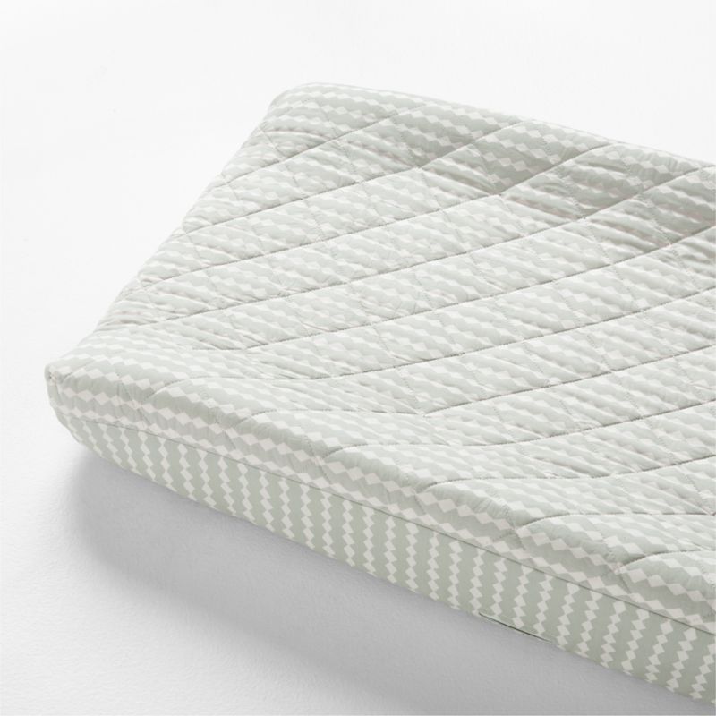 Designer Jeremiah Brent brings subtle geometric prints to the nursery with our Montcalm Organic Cotton Changing Pad Cover. In a soothing color palette of soft agate gray and pampas ivory, the lightly quilted organic cotton percale feels soft on baby's delicate skin. Pair it with our coordinating Montcalm crib fitted sheet.