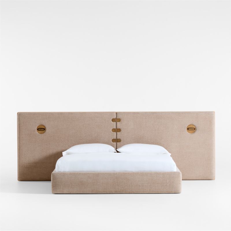 Lushly appointed with a commanding presence, Montecito is a bedroom retreat you won't want to leave. Fully upholstered in warm light brown, the bed extends its oak-trimmed headboard beyond the frame to backdrop nightstands (we recommend Brigette's Venice bedside tables). Brass detailing accents the headboard seam and the circular-plated nightlights. Making it super easy to light up nighttime reading without getting out of bed, the tubular lights turn on when pulled out and turn off when pressed back into place. Plus they swivel 180° to provide pinpoint illumination. Luxe and commanding, this is a bed you won't want to leave.