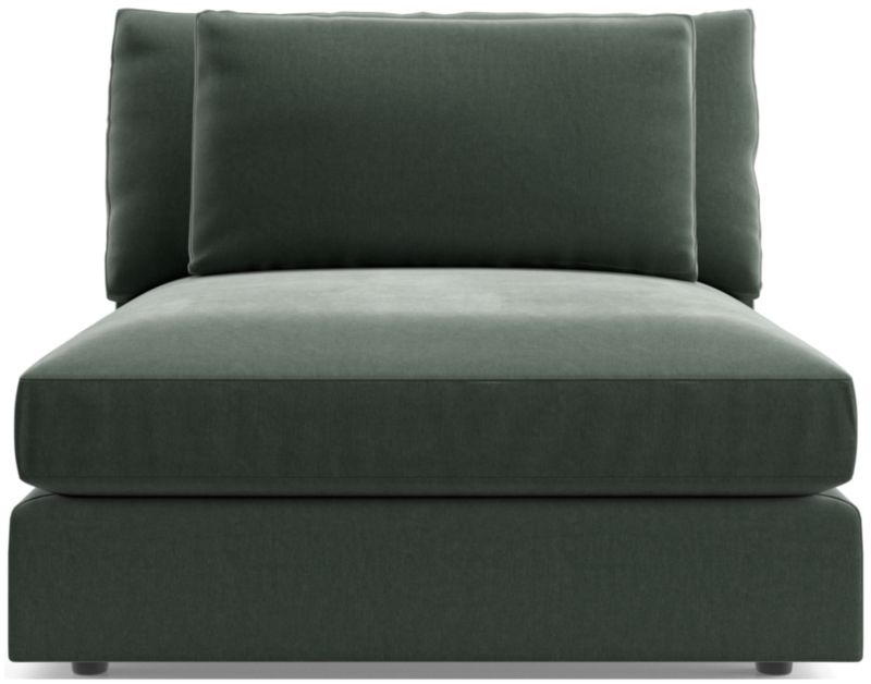 Stunning Monterey brings its sumptuous upholstery and clean, timeless lines to any style room—from cocktail-hour sophisticated to movie-night casual. The armless chair provides ultimate comfort with a curl-up seat cushion and lumbar back pillow to prop up the perfect perch. We're smitten with the vintage vibe of Cypress, our highly durable, velvety soft, family-friendly upholstery in luminescent sapphire Night. Combine with other Monterey modular components to create the perfect sectional for your home.
