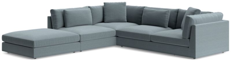 Stunning Monterey brings its sumptuous upholstery and clean, timeless lines to any style room—from cocktail-hour sophisticated to movie-night casual. The combination of two right-arm sofas and a chaise-positioned ottoman provides ultimate comfort with curl-up seat cushions plus arm, throw and lumbar back pillows that prop up the perfect perch. We're smitten with the vintage vibe of Cypress, our highly durable, velvety soft, family-friendly upholstery in luminescent sapphire Night.