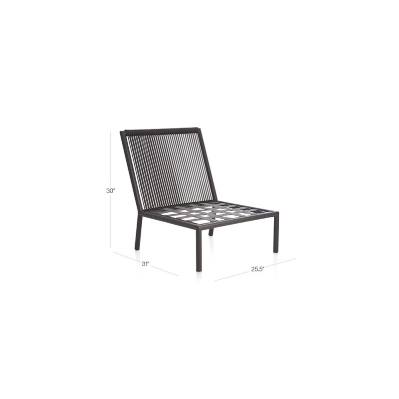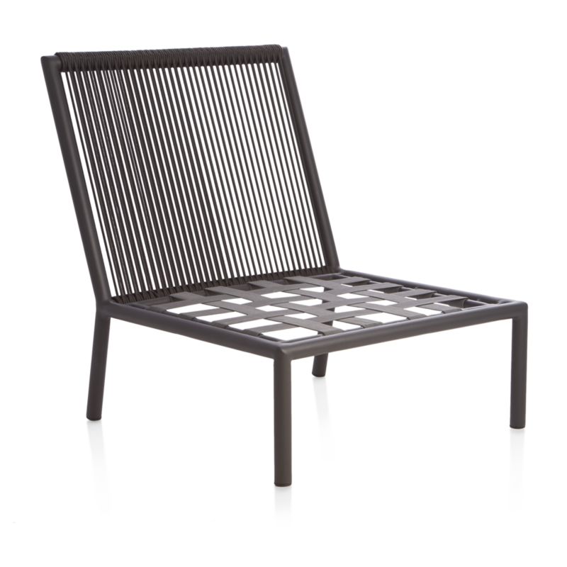 This synthetic resin rope, hand-wrapped over the weather-resistant aluminum frame, is colorfast and UV-resistant. The Morocco Armless Outdoor Lounge Chair is a Crate and Barrel exclusive.