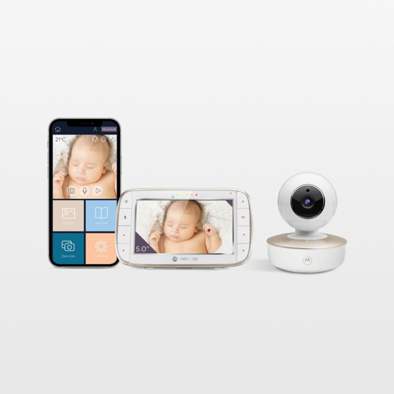 The Motorola VM855 Connect WiFi video baby monitor makes it easy to watch over your little one. Equipped with a full-color 5" screen and a battery-powered portable camera, this monitoring system is compact yet mighty. The camera's remote pan, tilt and zoom functions and infrared night vision enable easy check-ins. Mount the camera using the flexible crib mount, or quickly set up the portable device when away from home.