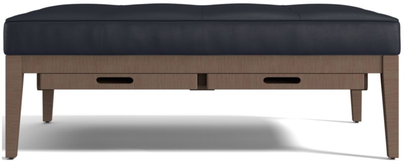 Parked in front of a sofa or sectional, our rectangular ottoman is entertainment central. Nash doubles up as an extra seat or cocktail table and offers two removable serving trays, cleverly concealed under its cushioned top. Upholstered in leather, the ottoman is neatly tailored with topstitching and buttonless tufting.