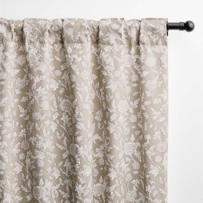 Natural Beige Floral Organic Cotton Linen Window Curtain Panel 52"x84"