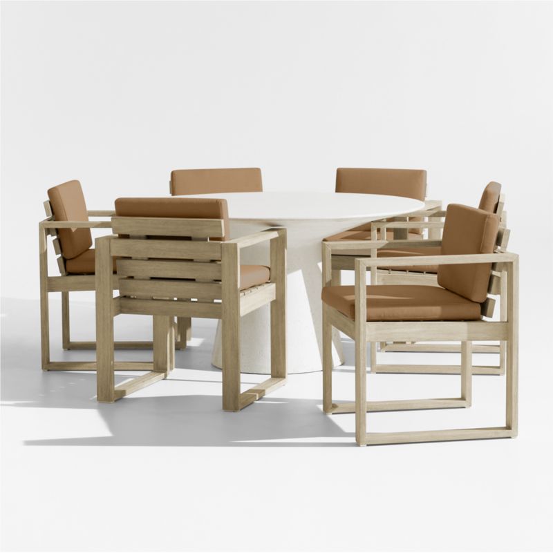 • View Nayarit Cement Outdoor Dining Table Set with Mallorca Chairs and Cast Teak Brown Sunbrella ® Cushions - image 3 of 4