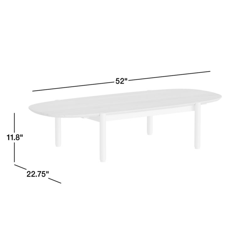 The mixed-material coffee table graces outdoor spaces with living-room style and all-weather durability. Slats of sustainably sourced teak fashion the oval top, tucked into a clean-lined aluminum frame with a matte powdercoat finish in olive green. The long, low-profile table sits comfortably before a sofa, sectional or grouping of chairs.
