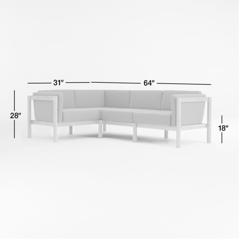 Space-saving yet deep-seated, this sectional sofa invites family and friends to kick back and enjoy the great outdoors. Boxy seat and back cushions upholstered in sage green are curl-up comfy, while the sectional sofa's slim side bolsters add a soft layer for draping arms. Natural teak shapes the chunky, rounded frames complemented by hand-stretched polyester rope backs that angle slightly for a comfortable recline. Offering living-room looks with surprising durability, the right-angled outdoor sectional withstands the elements in weather-resistant teak and fast-drying foam cushions.